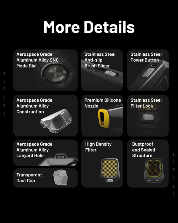 【Illumination Support:】 Includes a high-CRI LED light to illuminate hard-to-see areas, ensuring thorough dust detection and removal.